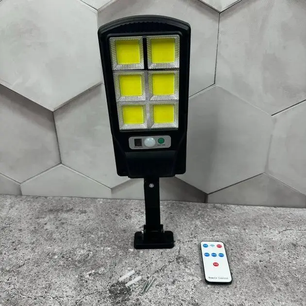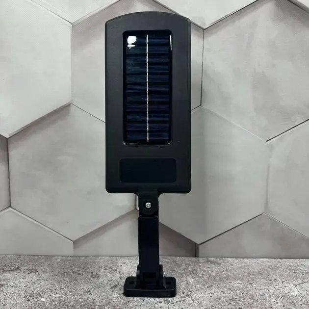 Призначений для автономного висвітлення території. Світильник працює від сонячних батарей і тому Вам не потрібно турбуватися про його заряджання або підключення до мережі. Датчик руху спрацьовує з відстані 7 – 9 метрів, при куті огляду 120 градусів. Час роботи при повному заряді акумулятора до 1-2 днів. Вбудовані 3 режими роботи (повний, 50% від потужності при неактивній роботі, 100% потужності у разі руху, 50% потужності). Цей світильник може бути використаний для охорони різних об'єктів, для освітлення паркувань, парків, садів, території навколо будинку і т.п. Переваги: Не потребує батарей і підзарядки – працює від сонячного світла; Збільшується яскравість з допомогою реакції на рух; Зручний та простий монтаж; Не піддається атмосферним впливам (дощ, сніг, вітер тощо); Компактний та легкий; 3 режими роботи; Управління через пульт; Стильний вигляд.     уличная лампа на солнечной батарее, водонепроницаемый светильник 120-B