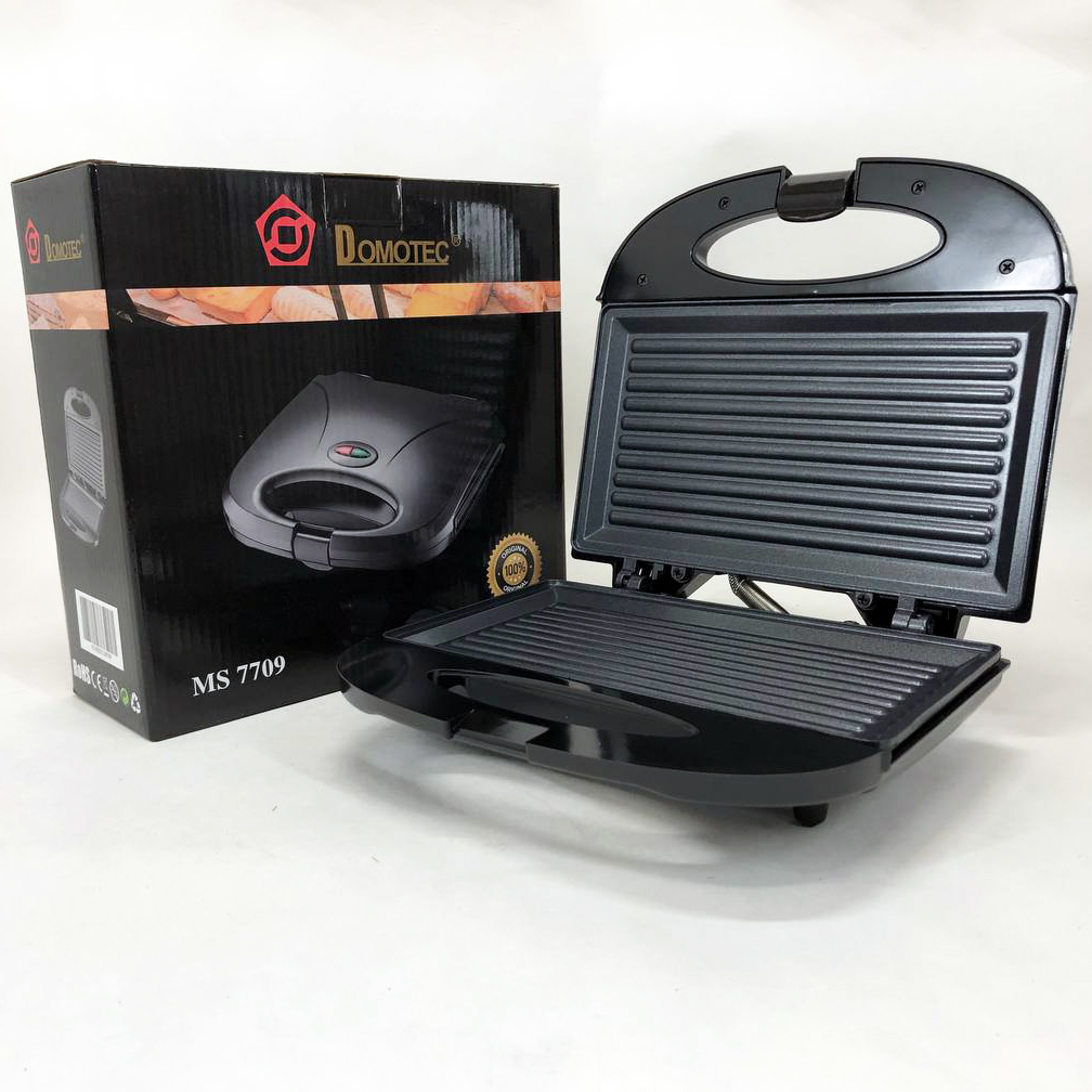 Гриль-сендвичница DOMOTEC MS-7709 – этот компактный прибор не займет много места на Вашей кухне и обязательно порадует членов семьи любого возраста или гостей дома вкусными домашними бутербродами с любимыми продуктами. С ее помощью можно также обжарить или разогреть мясные стейки, яйца, овощи и другие полезные продукты.