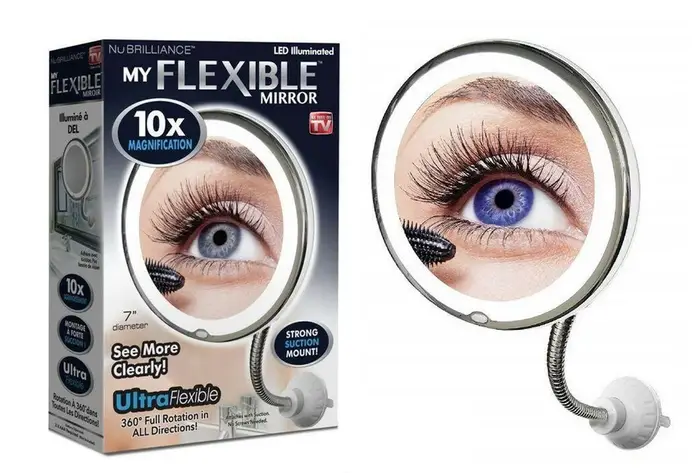 Кругле гнучке дзеркало для макіяжу з LED-підсвіткою з 10-кратним збільшенням Ultra Flexible Mirror. Настінне дзеркало на присоску для ванної кімнати з led-підсвіткою.