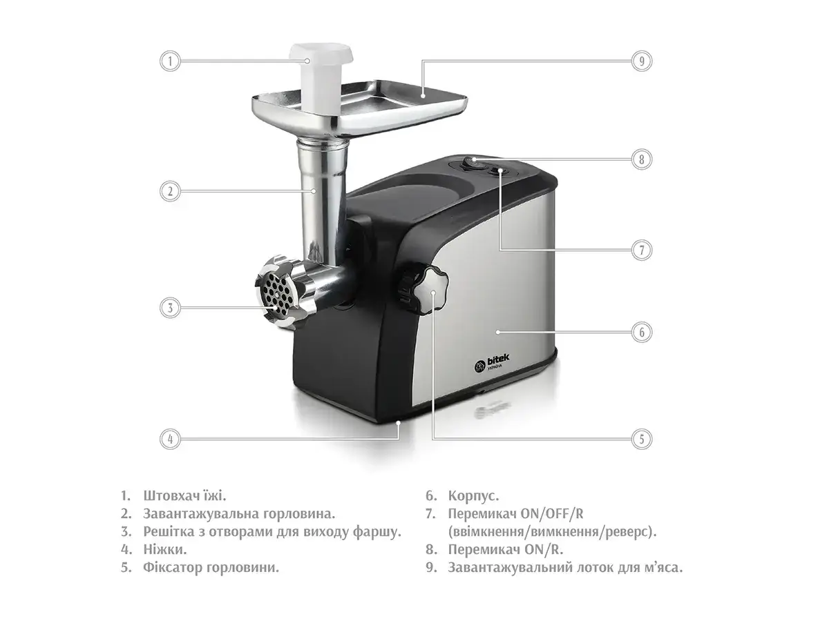 М’ясорубка електрична 4200Вт ковбаса кеббе насадки соковитискач BITEK BT-3700