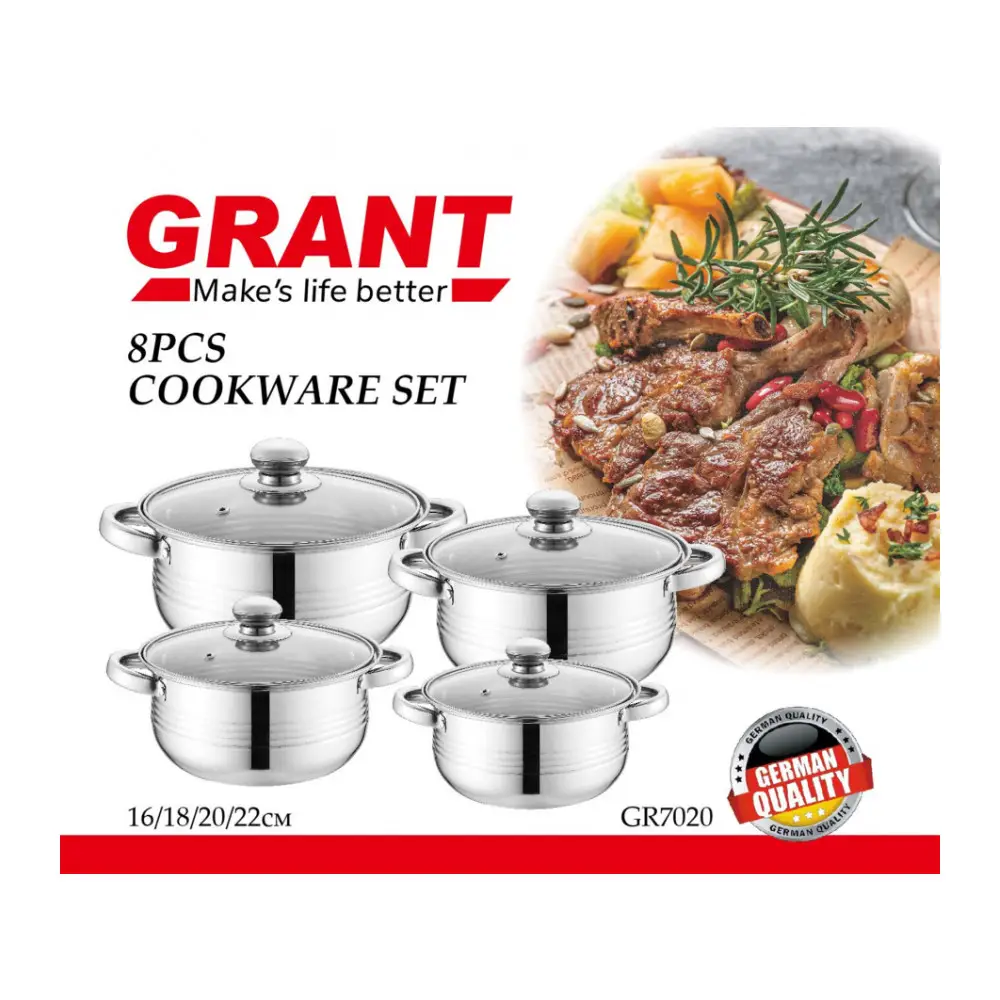 Набір каструль із кришками із нержавіючої сталі на 8 предметів Grand GR-7020 Набір кухонного посуду