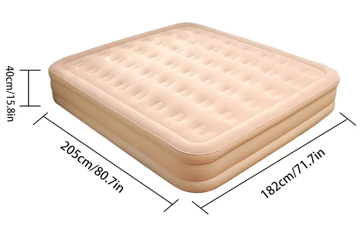 Зручний двоспальний надувний матрац JR-5063 — практичне рішення для дому, дачі, прийому гостей і кемпінгу. До комплекту входять акумуляторний насос із заряджанням USB Type-C, тож надування/здування займає мінімум часу, а висота 40 см забезпечує комфорт посадки та підйому, наче на звичайному ліжку.