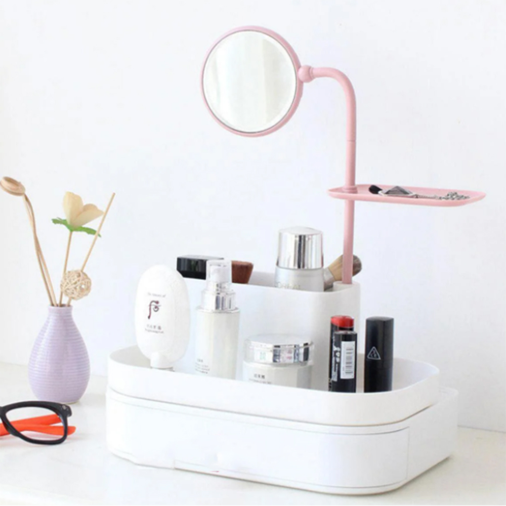 Настільний бокс для зберігання косметики з висувними ящиками та дзеркалом органайзер