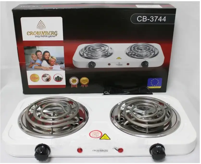 Плита електрична Crownberg CB-3744 з двома спіральними тенами, 2000Вт