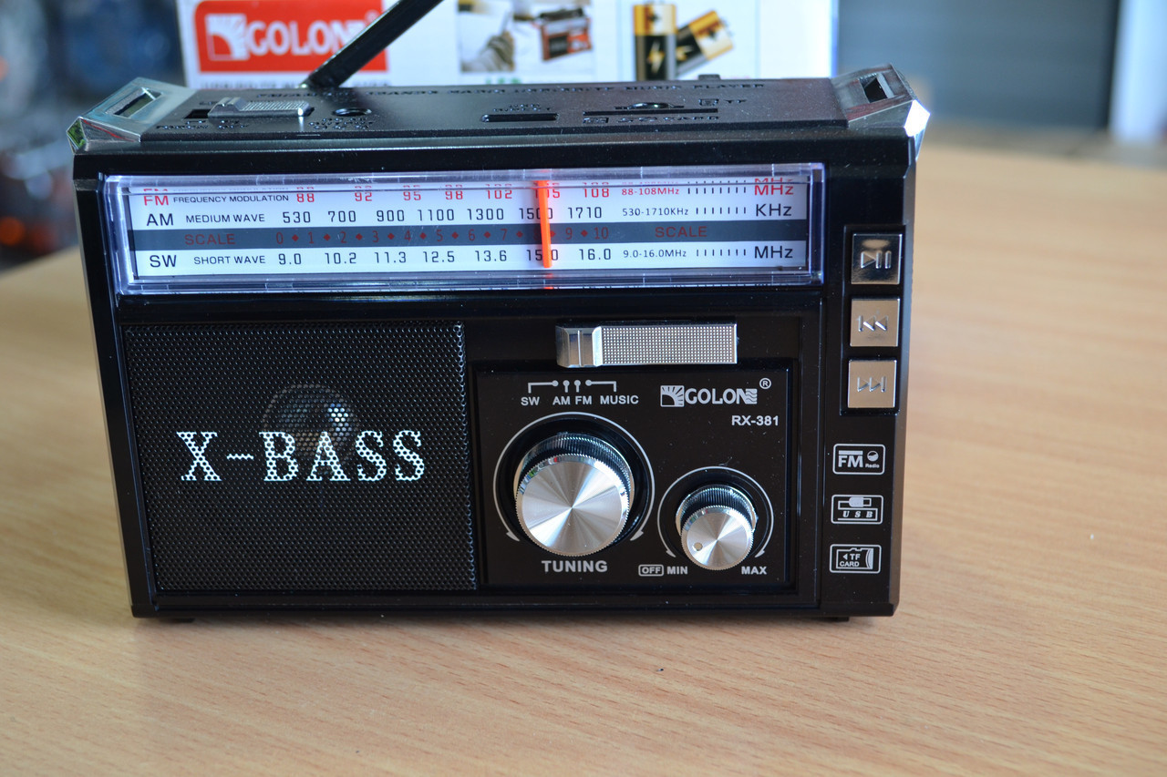 Радиоприёмник c USB/SD функцией и съемным аккумулятором торговой марки “GOLON“.