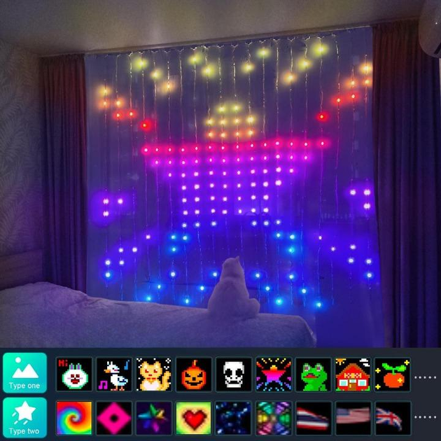 Розумна гірлянда-штора Smart-штора LED (3×2 м) — це інноваційна гірлянда для створення унікальної атмосфери у будь-якому приміщенні або на вулиці. Завдяки можливості програмувати освітлення через мобільний додаток iDeal, ви можете створювати різні світлові ефекти, тексти та малюнки, і навіть синхронізувати світло з музикою. Підключення через Bluetooth та пульт дистанційного керування дозволяє легко налаштовувати режим роботи гірлянди, а USB-живлення забезпечує універсальність і зручність підключення.