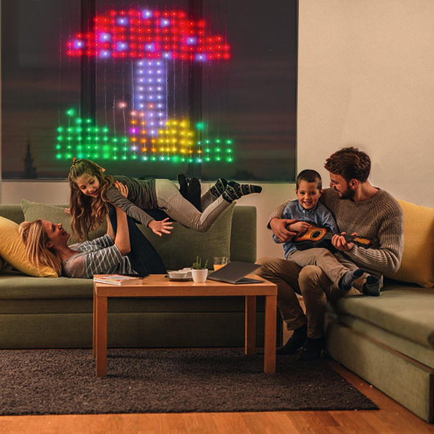 - Програмоване освітлення: Створюйте будь-які малюнки та тексти на шторах через додаток iDeal, що дозволяє адаптувати освітлення під будь-яку подію чи настрій.
