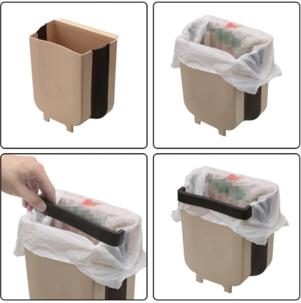 Дуже зручне рішення для Вашої оселі, зокрема для збирання сміття. Більшість людей використовують відра для зберігання сміття в будинку або офісі, але навісне відро для сміття — це зручніше пристосування! Тримач кріпиться за допомогою гачка на дверцятах або ручку. товщиною до 2.5 см. Зверху закривається кришкою. Сміттєвий контейнер також можна встановити на підлогу. Відро є складаним і тому займає мінімум місця. Можна використовувати не тільки вдома, але й в офісі, автомобілі тощо.