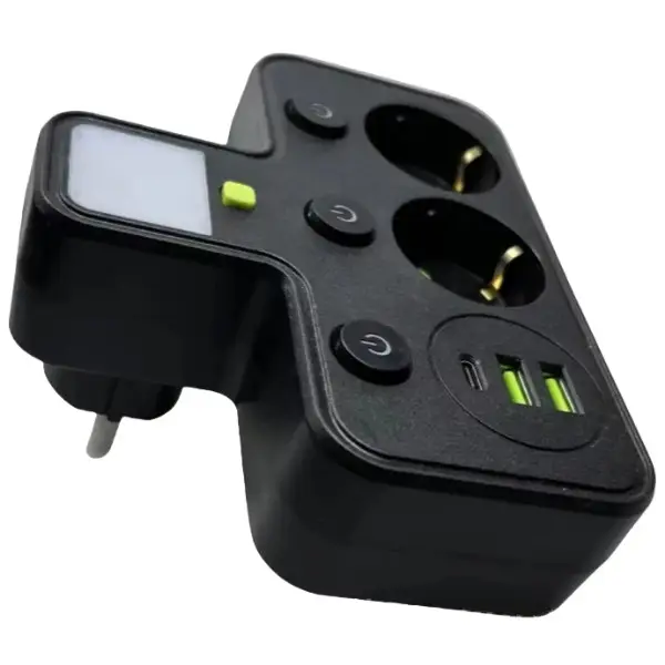 Високоякісний мережевий подовжувач. 2 євро-розетки, 2 USB порти + 1 Type-C, із захистом для вашої техніки від стрибків напруги мережі та функцією зарядки для ваших гаджетів. УВАГА: мережевий фільтр призначений для побутового використання!