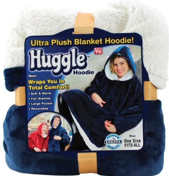 - – Huggle Hoodie — це комбінація м’якої теплої ковдри та комфортної толстовки з капюшоном (худі).