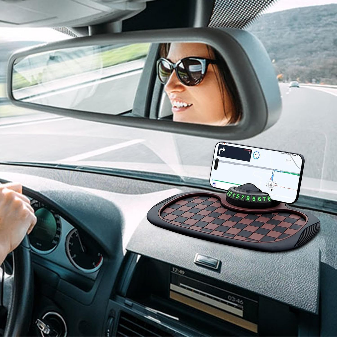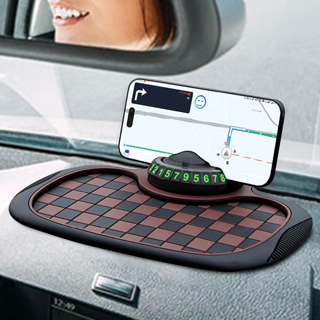 - Накладка на приладову панель автомобіля забезпечує надійне зчеплення з різними предметами, такими як мобільні телефони, сонцезахисні окуляри, ключі тощо, запобігаючи їх ковзанню або трясіння під час керування автомобілем.