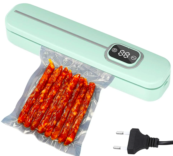 Vacuum Sealer – це сучасний кухонний гаджет, який продовжує термін придатності продуктів за рахунок повного видалення повітря з упаковки. Він оснащений: