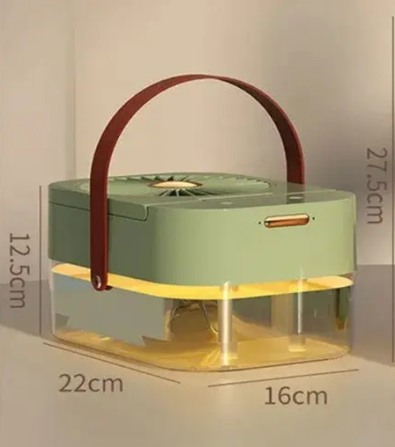 Резервуар для води міні-кондиціонера легко очищається. Переносна ручка дає змогу брати міні-вентилятор із собою куди завгодно, зробивши його ідеальним для використання вдома, на роботі або під час відпочинку на природі. Вам просто потрібно налити трохи крижаної води в резервуар для води, увімкнути міні-вентилятор, і він охолодить гаряче повітря навколо вас за кілька секунд, що робить його ідеальним для використання в приміщенні та на робочому місці.