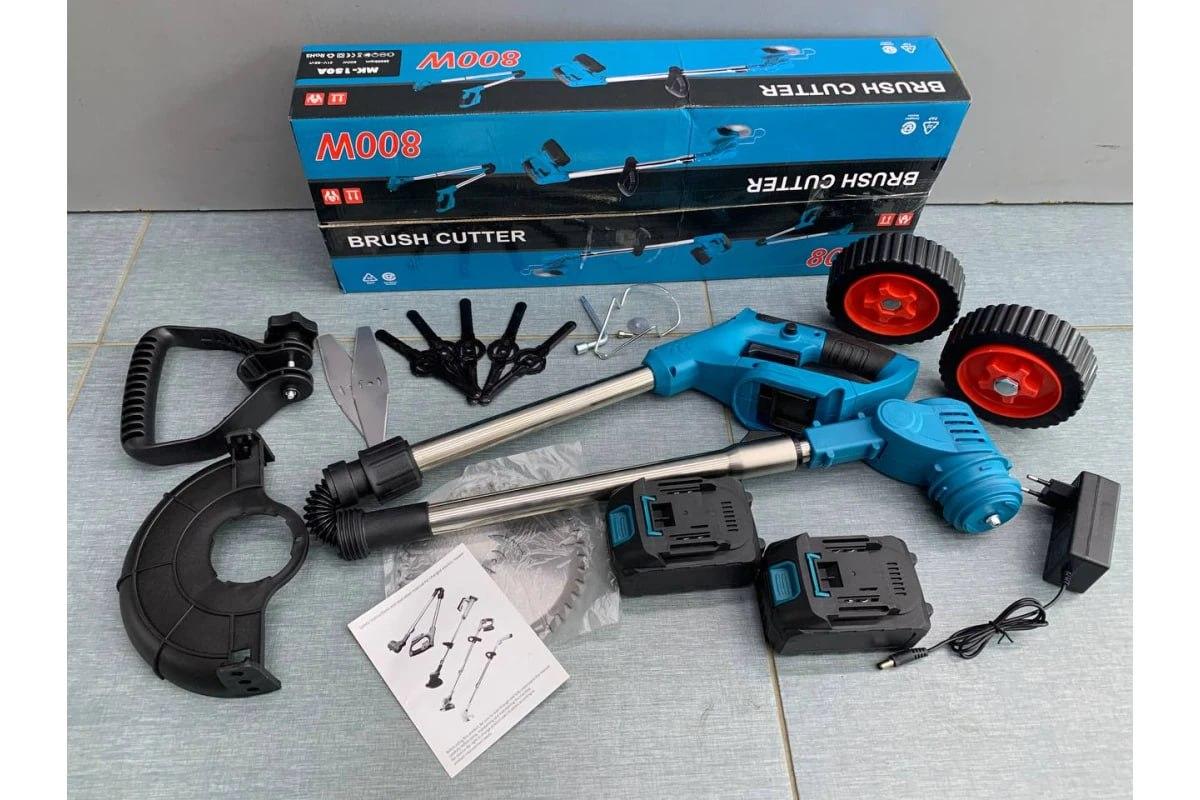 До комплекту входять: сам тример, 5 пластикових лез, 2 металевих леза, 1 пильний диск, 2 акумулятори на 38В, зарядний пристрій, ручка, коробка та детальна інструкція українською мовою. Все необхідне для ефективної та комфортної роботи на садовій ділянці.