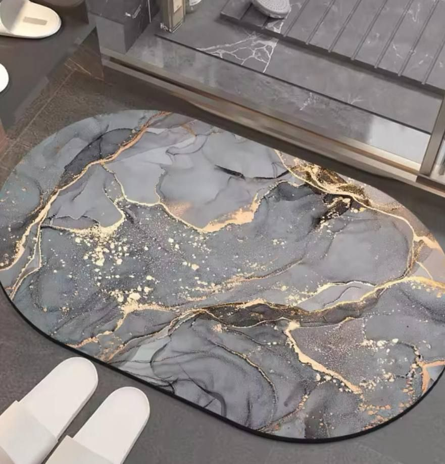 Супер абсорбуючий килимок LY-1021 з мармуровим дизайном – стильне та функціональне рішення для ванної кімнати, передпокою чи кухні. Сучасний візерунок під мармур надає інтер'єру елегантності, а ультратонка та міцна структура забезпечує довговічність та зручність у використанні. Килимок швидко вбирає вологу, не ковзає та легко чиститься.