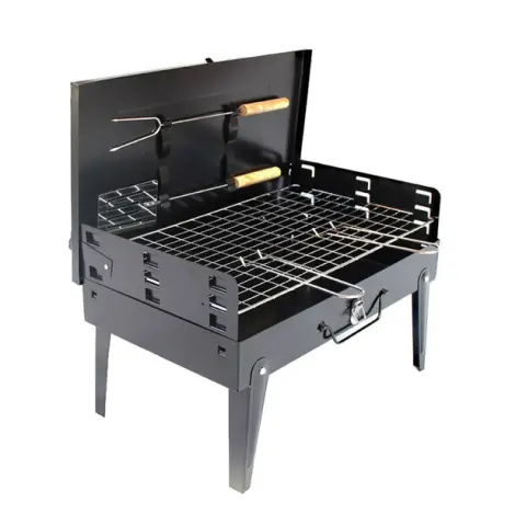 У складеному вигляді мангал перетворюється на компактний кейс із ручкою, завдяки чому зручно не лише везти у багажнику, а й нести в руках.