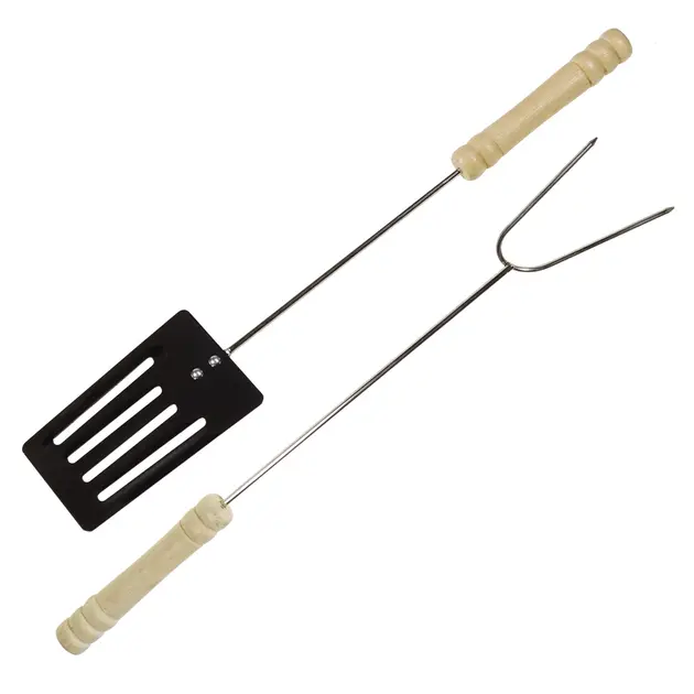 У комплект входить грати для гриля, лопатка та вилка для м’яса – все необхідне, щоб приготувати улюблені стейки на природі чи дачі.