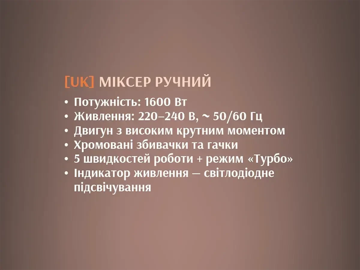 Міксер ручний – це універсальний ручний міксер потужністю 1600 Вт.