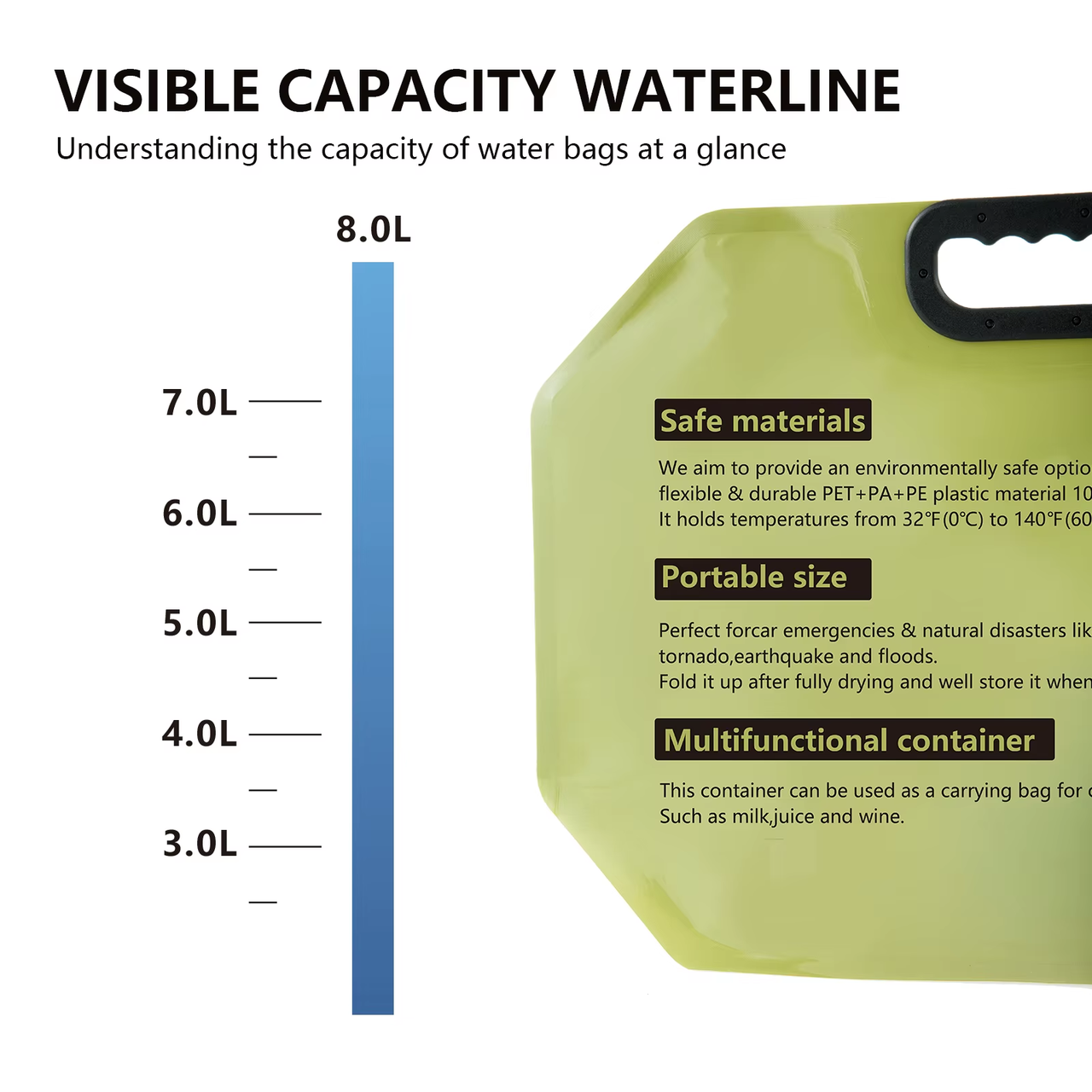 2.Велика ємність: мішок для води має ємність 8 л, що дозволяє вирішити проблему води на відкритому повітрі одночасно.
