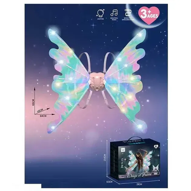 Світлодіодні крила феї-метелик, що рухаються з підсвічуванням та мелодіями на ремінцях для дівчинки Wings of Fairy