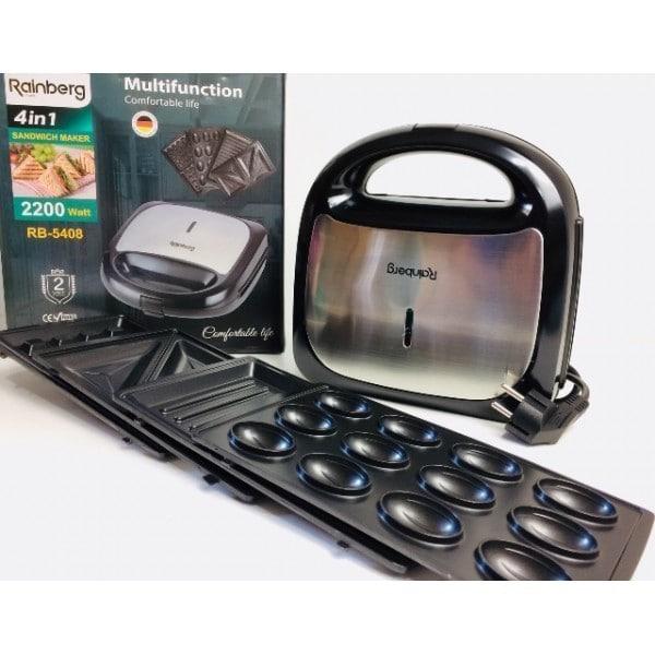 А Сэндвичница Rainberg RB-5408 мультимейкер 4 в 1: сэндвичница, вафельница (для приготовления венских вафель) гриль,орешница
