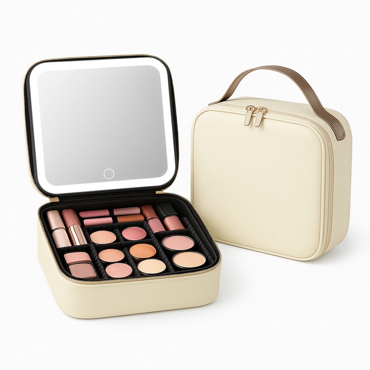 Елегантна та функціональна сумка-органайзер для косметики стане незамінним помічником вдома та у поїздках. Оснащена великим дзеркалом з LED-підсвічуванням, яке забезпечує ідеальне освітлення для макіяжу за будь-якого освітлення. Місткий внутрішній відсік дозволяє зручно розмістити декоративну косметику, пензлі та аксесуари. Жорсткий корпус з EVA надійно захищає вміст від пошкоджень, а зручна ручка робить перенесення легким та комфортним.